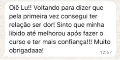 O objetivo final é voltar a viver a sua intimidade de verdade, sem medo e sem culpa. Muitas mulheres que até conseguem parar de sentir dor não sabem como manter os resultados no dia a dia e acabam voltando aos antigos padrões. Você vai aprender como manter o corpo preparado, aumentar o desejo de forma natural, conversar com o parceiro(a) sobre o que gosta e criar um novo ritmo íntimo, seguro e prazeroso. Aqui você conquista confiança no próprio corpo, desejo de verdade e liberdade para viver a intimidade como sempre quis.