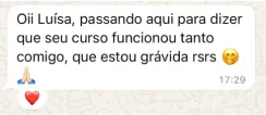 O suporte é feito através de um grupo exclusivo de alunas no WhatsApp, onde você pode compartilhar, tirar dúvidas e receber apoio. Além disso, temos plantões quinzenais ao vivo, onde você conversa diretamente comigo e pode receber orientações personalizadas.
